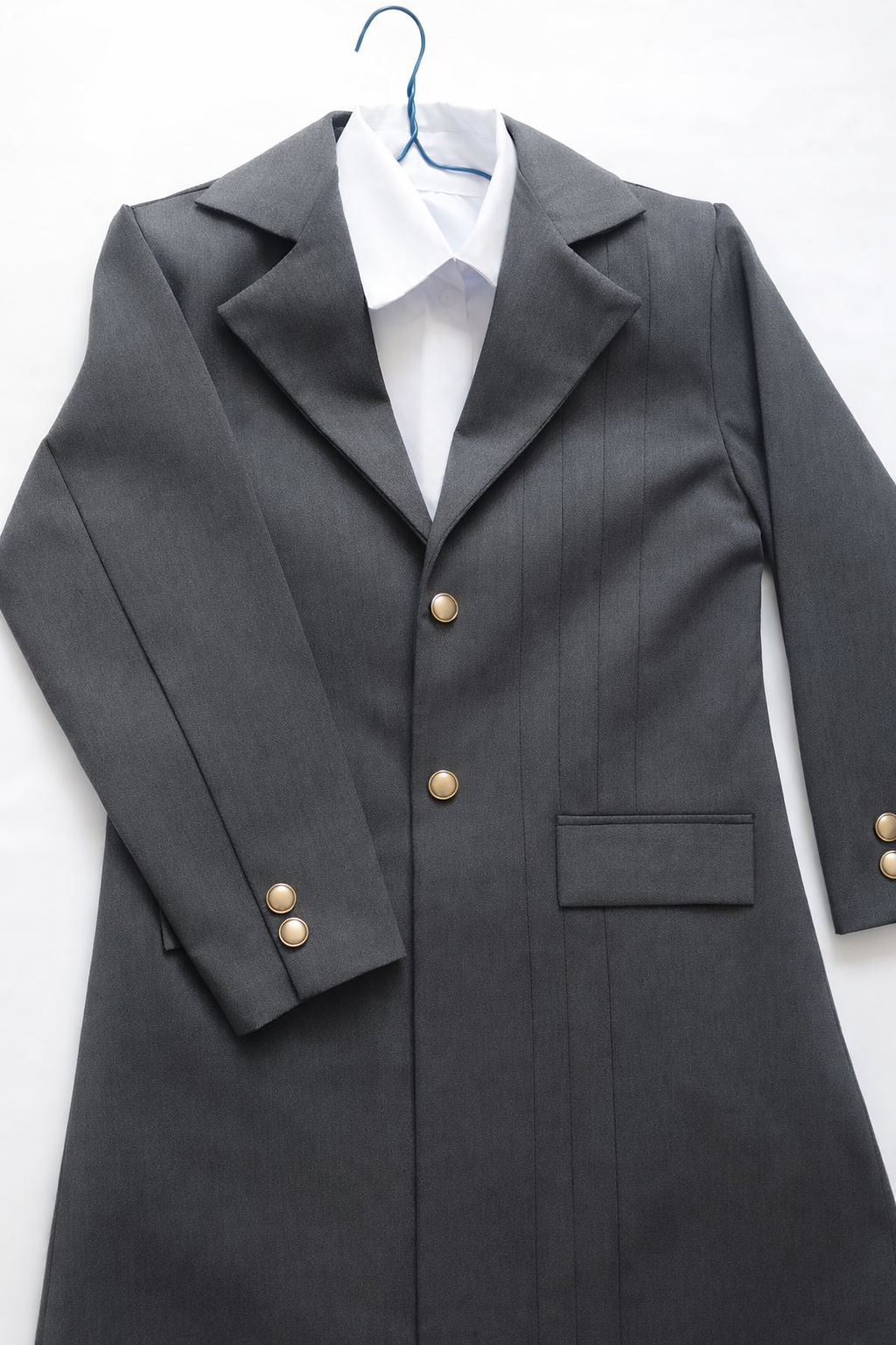 جزئیات:جیب دار_ رنگ خاکستری _دو دکمه در جلو ،سه دکمه روی هر آستین _جلوی کار لایی کوبی شده